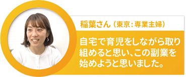 まだ子供が11ヶ月で、預けて外に働きに出るのはちょっと抵抗があった時に、自宅でできるこの副業を始めようと思いました。