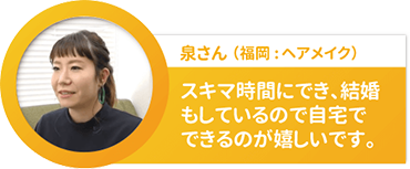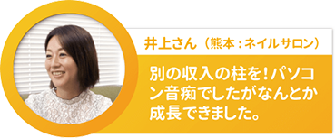 ネイルサロン業界はライバルが非常に多く厳しい現実があったので、ずっと別の収入の柱が欲しいと思って探していました。それで見つけたのが田村先生です。