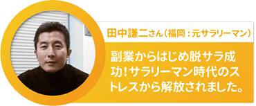 僕も長年サラリーマンをやっていて、はじめは副業から始めたんですが、仕事をやめてこのビジネスを本業にすることができ、勤務時間の長さ、体力的な辛さ、人間関係などのストレスからも解放され、より一層ライフスタイルの実現ができています。 人生を変えたいと思っている方はぜひ一緒に頑張りましょう!