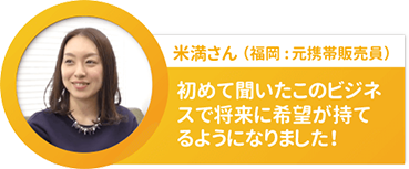 初めて聞いたこのビジネスで、ゼロからなので慣れるのに時間がかかりましたが、収入につながる喜びがありやった分だけ増えるので楽しく取り組めました。目標は5倍は結果を出せるようになりたいです!