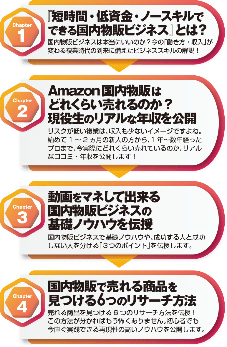 アマゾンビジネスがこれらと大きく違うのは、特別な才能やセンスは必要なく、ある意味愚直に進めていく事で結果につながっていく手堅いビジネスと言える点です。
